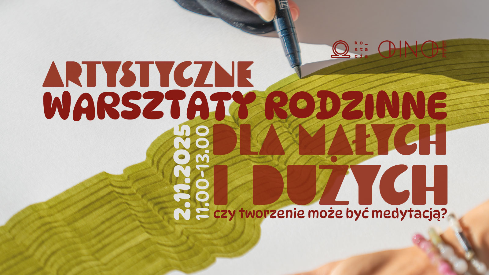 Podczas warsztatów wspólnie zatrzymamy się na chwilę, posłuchamy siebie i pozwolimy, by sztuka stała się naszą formą medytacji. Poprzez ruch ręki, przepływ tuszu i spotkanie z kolorem poszukamy spokoju, skupienia i radości tworzenia.